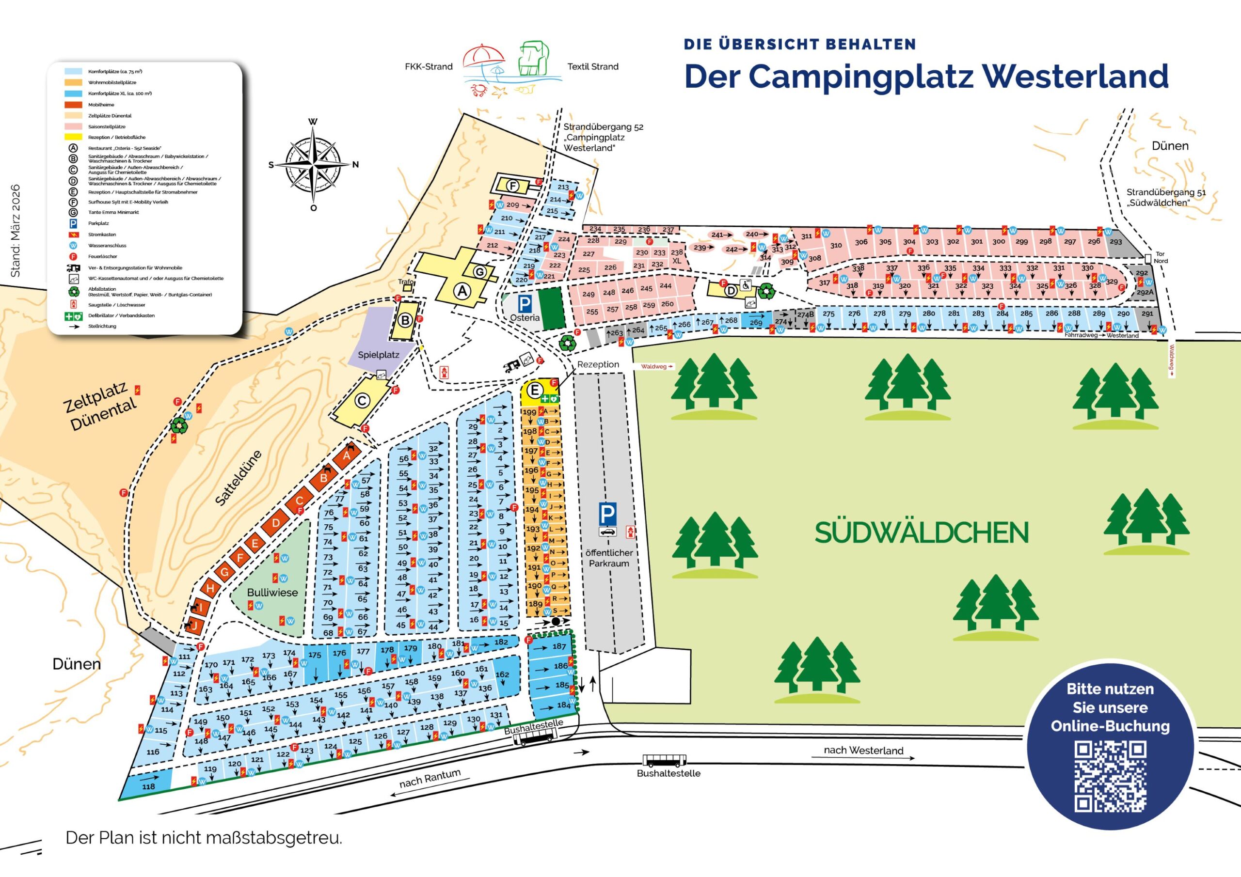 Egal, ob Sie auf unserem Campingplatz zelten, in Ihrem Wohnwagen, Wohnmobil oder Megaliner den Aufenthalt auf einem unserer Stellplätze verbringen möchten oder in einem Mobilheim übernachten – auf dem Campingplatz Westerland bieten wir Ihnen stets den richtigen Platz dafür.
